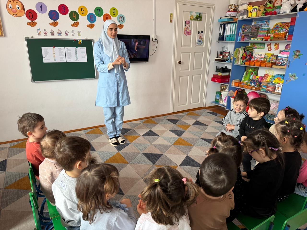 Для занятий по конструированию имеются разнообразные виды конструкторов. Уделено внимание и эстетическому оформлению помещений, так как среда играет большую роль в формировании личностных качеств дошкольников. Ребенок находится в детском саду весь день и необходимо, чтобы окружающая обстановка радовала его, способствовала пробуждению положительных эмоций, воспитанию хорошего вкуса. Во всех возрастных группах красивая детская мебель - шкафы, детские столы, стационарное детское оборудование надежно закреплено. Мебель и игровое оборудование подобраны с учетом санитарных и психолого-педагогических требований.В детский сад принимаются дети с 1.5 года до 7 лет. Имеются 11 основных групп.Для дополнительного образования в саду ведется кружок " Мой друг светофор". В нем задействованы дети 5-7 лет. Время работы детского сада с 7:00 до 19:00.