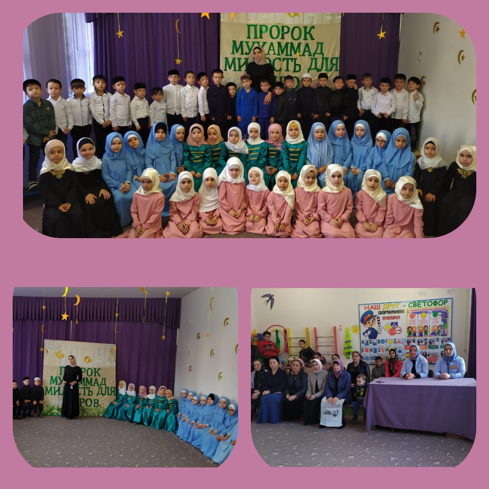 08.11.2019В МБДОУ «Детский сад №8 «Сказка» в этот месяц проходили ряд мероприятий, посвящённых ко Дню рождения Пророка Мухаммада (да благословит его Аллах и приветствует). Фасад здания украсили баннером. В старших и подготовительных группах провели тематические занятия и беседы о жизни Пророка Мухаммада (да благословит его Аллах и приветствует). С детьми из старшей группы «Смешарики» было проведено мероприятие, посвященное ко дню рождения Пророка Мухаммада (да благословит его Аллах и приветствует). Дети рассказывали стихи, исполнили нашиды, читали суры из священного Корана, рассказывали хадисы Пророка Мухаммада (да благословит его Аллах и приветствует).