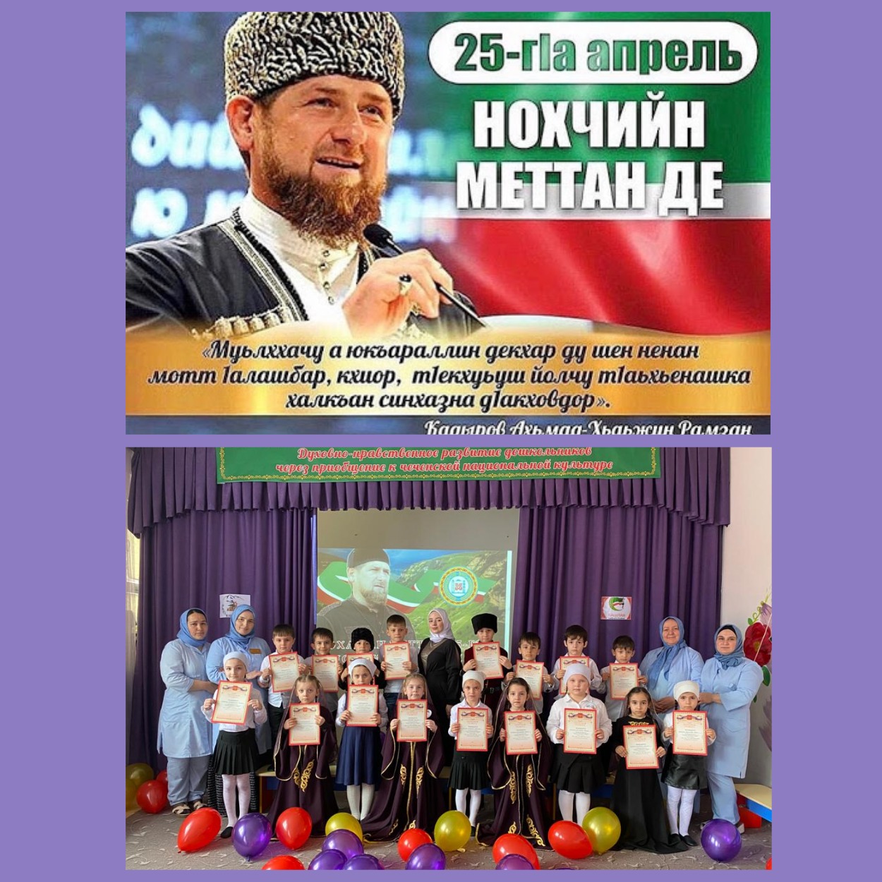 23.04.2021Вайн республикин куьйгалхочун Кадыров Рамзанан Указаца 25-г1а апрель – Нохчийн меттан Де ду аьлла д1акхайкхийна. Муьлхачу къоман коьрта билгало цуьнан мотт бу. Мотт боцуш къам хила йиш яц, маттаца хьаьрчина дохку х1ора къоман г1иллакх - г1уллакх а, оьздангалла а, дуьненан хьежамаш а. Нохчийн маттаца ду вайн къоман доьналла а, майралла а.