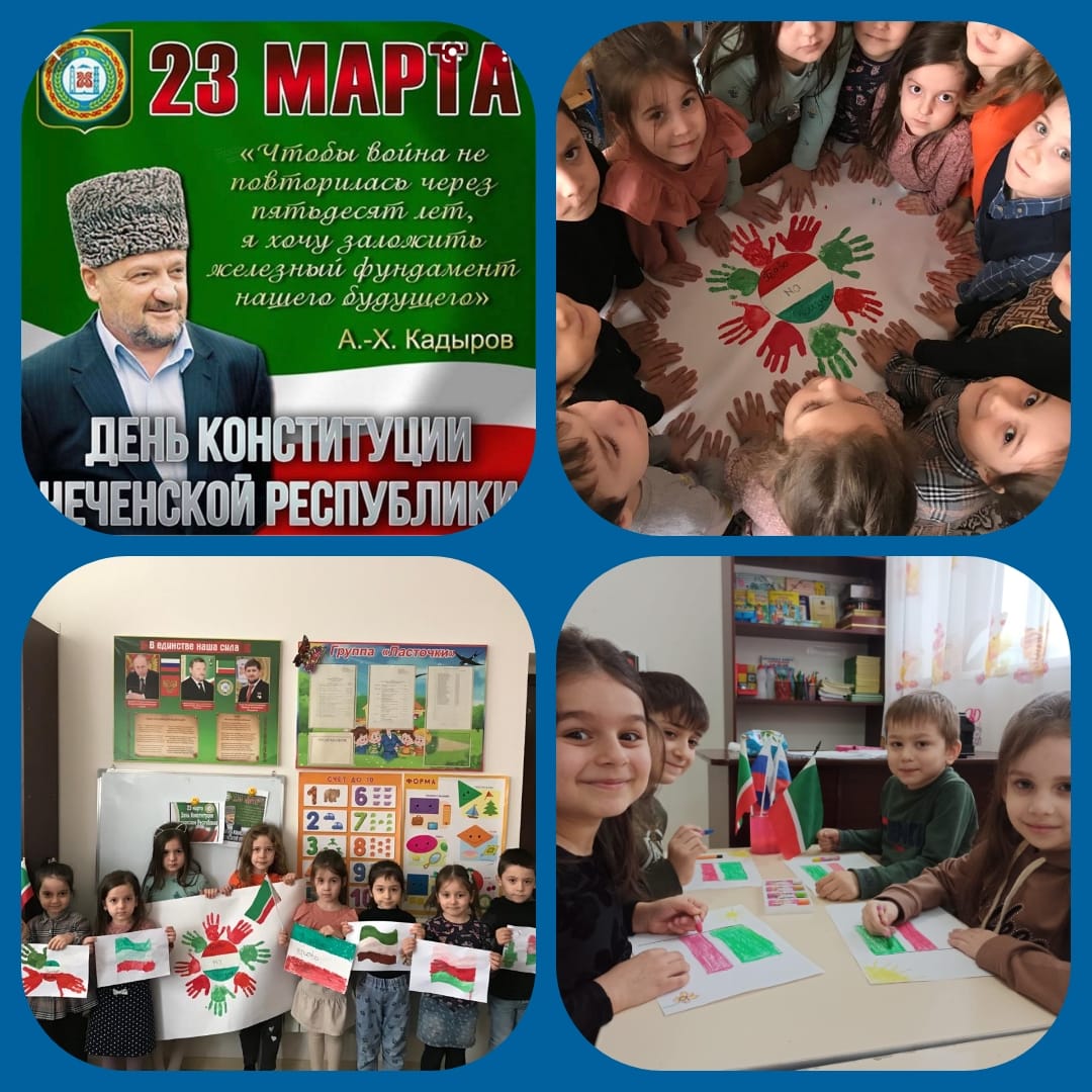 22.03.202221.03.2022г. Проведены тематические беседы с воспитанниками старших и подготовительных к школе групп. Воспитатели ознакомили дошкольников с государственным символом России и Чеченской Республики – флагом, рассказали доступной форме для их понимания о Конституции, законах и правах ребенка. Отметили, что мы все являемся гражданами Российской Федерации, Москва-столица России, а Грозный – столица Чеченской Республики. Детям даны представления достопримечательностях нашей республики. В завершении беседы дети исполнили песню о Родине.Необходимо отметить и позитивную сторону подготовки воспитателей к проведению тематической беседы: атрибуты символики Российской Федерации, иллюстрации достопримечательностей г.Гудермеса и Грозного.