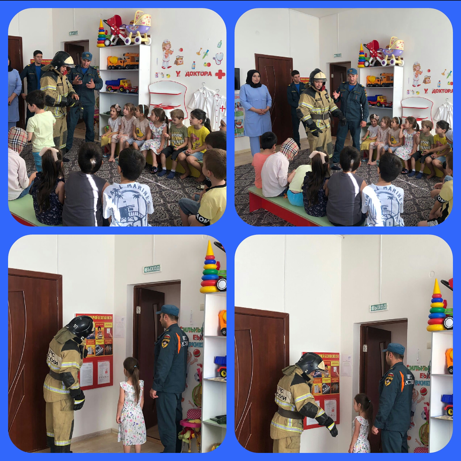 Командир отделения рассказал о правилах пожарной безопасности. В доступной и увлекательной форме объяснил детям, как надо себя вести при экстремальных ситуациях, рассказал о частых причинах возникновения пожаров. Интересен был рассказ и показ костюма пожарного, средств защиты пожарных при работе в задымлённых помещениях, лестниц, которые приспособлены для разной высоты зданий. Пожарные не только демонстрировали костюмы пожарного, но и предложили ребятам примерить элементы костюма, каски, перчатки, кислородную маску.