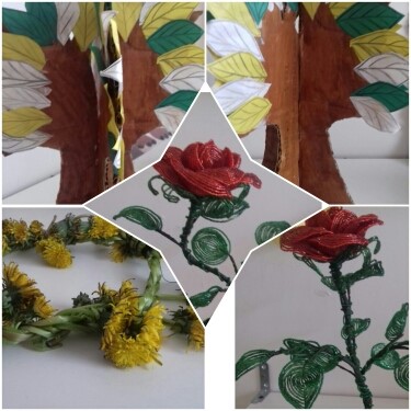 Рисунки и поделки , которые дети сделали с помощью своих родителей предоставлены в УДО г. Гудермес .