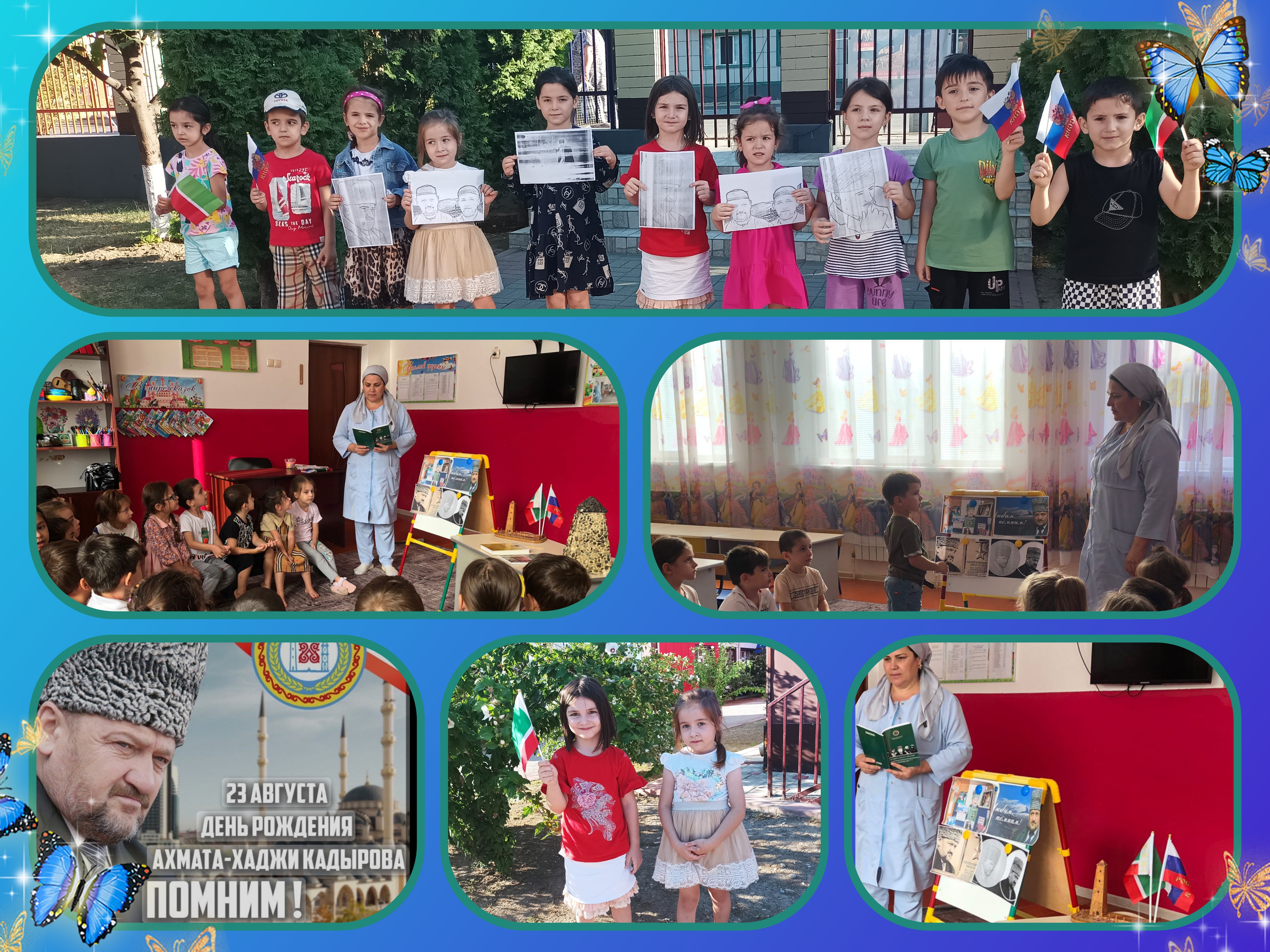 23.08.2023В рамках реализации плана работы на летне-оздоровительный период 23.08.2023г. в МБДОУ «Детский сад №8 «Сказка» в старшей и подготовительной группе проведены мероприятия посвященные Дню рождения А-Х.Кадырова с целью ознакомления дошкольников с биографией и интересными фактами из жизни Ахмат-Хаджи Кадырова, который с самого начала принял позицию мира и созидания и вернул нашу республику светлому будущему. С детьми были проведены тематические беседы на тему: «Народный герой», « Ахмат –Хаджи – справедливость, честность, мужество» . Рассматривали альбом, где были собраны материалы, фотографии и читали стихи. Какие трудности пережил он во время возрождения нашей республики, как он стремился к тому, чтобы и взрослые и дети жили под мирным небом. Светлая память Первому Президенту Чеченской Республики Ахмату-Хаджи Кадырову. Его имя навсегда вписано в героическую историю России, оно будет жить в сердцах благородных потомков до тех пор, пока жива Чеченская Республика. Ахмат-Хаджи Кадыров - первый герой Чечни посвятивший свою жизнь служению Чеченскому народу! Дала г1азот къобал дойла цуьна!