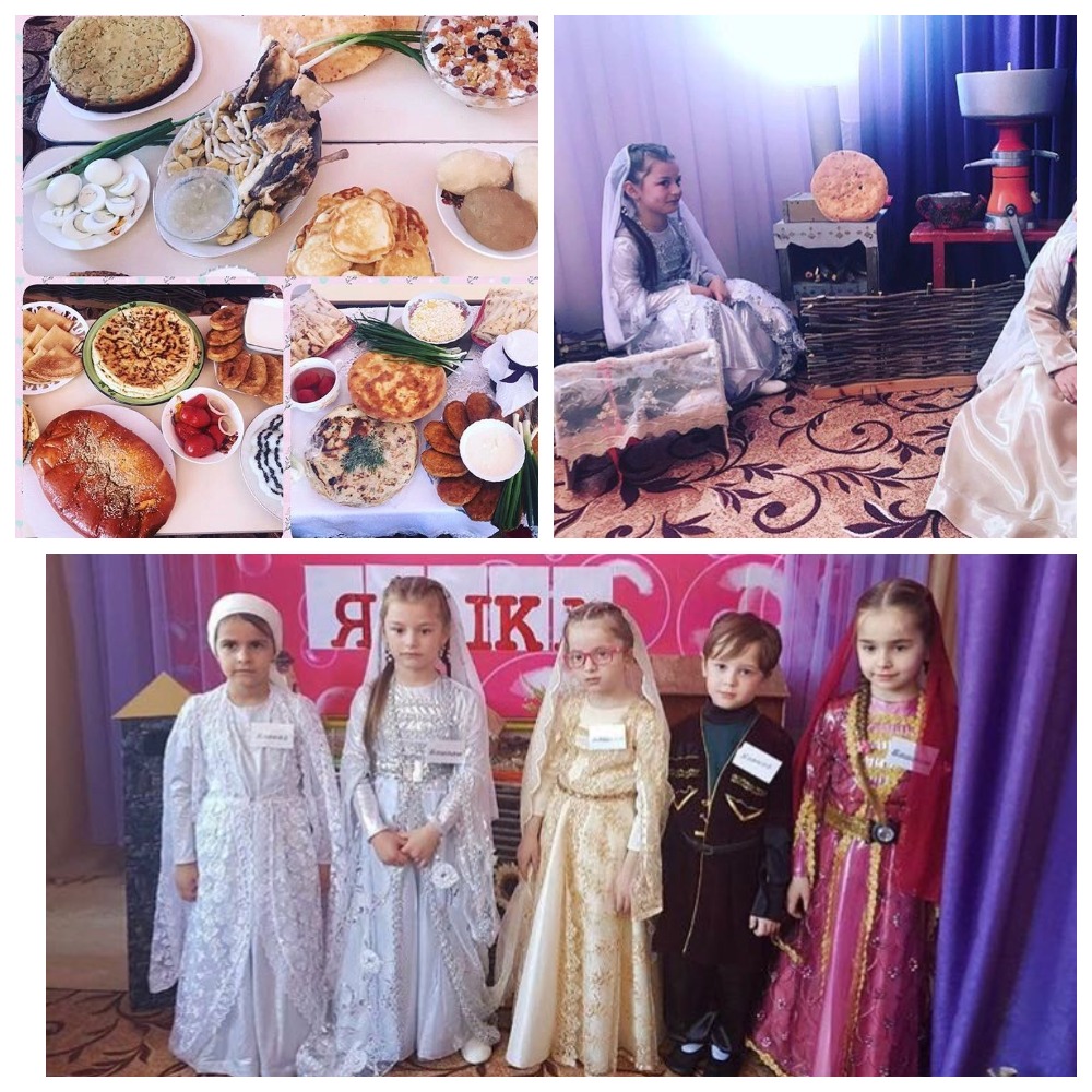 В соответствии с Указом Президента Чеченской Республики Р.А. Кадырова №207 от 11.05.2007года ежегодно 25 апреля празднуется День чеченского языка. С целью воспитания духовно-нравственной культуры детей, привития любви к родному краю, воспитания чувства ответственности и уважения к чеченскому языку в ДОУ проведены мероприятия: оформлен фасад здания ДОУ баннером, посвященным Дню чеченского языка, в группах проведены тематические беседы , посвященные «Неделе чеченского языка» с целью углубления знаний о родном языке, воспитания любви к родному краю. Среди воспитанников старших групп проведен конкурс- викторина «Беза, бовза, хаа хьайн ненан мотт», в ходе которого дети состязались в знании быта, обычаев, фольклора чеченского народа. Завершением праздничных мероприятий стал конкурс среди родителей «Любимое блюдо нашей семьи».