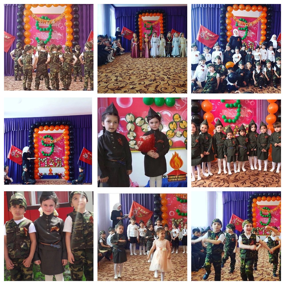 День Победы – самый любимый, самый главный праздник для нашей страны, имеющий огромное значение для её истории. Поэтому детей обязательно приобщать к празднованию Дня Победы, начиная с детского сада. Согласно плана в ДОУ проведены мероприятия ко Дню Победы. Оформлен фасад здания ДОУ баннером, проведены тематические беседы в группах детей среднего и старшего дошкольного возраста. Воспитатели в доступной форме рассказали детям о нашей стране, о войне, о победе наших воинов. что воевали за их счастливое детство. Проведено мероприятие «Праздник с сединою на висках», посвященное Дню Победы. Воспитанники подготовительной группы читали стихи о воинах, пели песни как на русском, так и на чеченском языках, исполнили танцы.